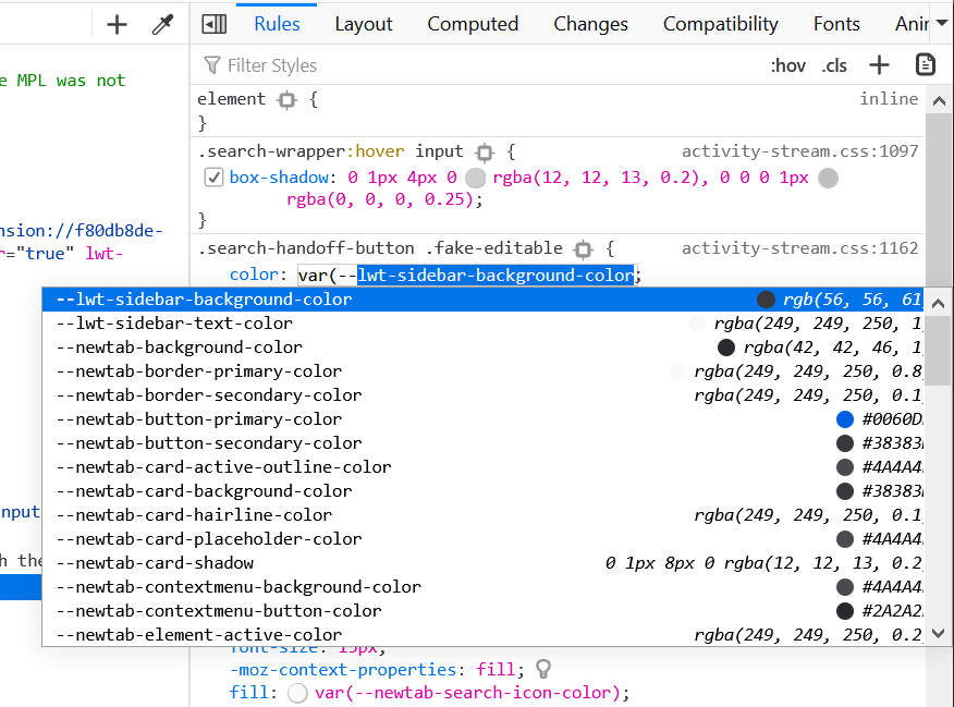 ![[Click to open image] Screenshot of Firefox's css var autocomplete Screenshot of Firefox's css var autocomplete](/assets/firefox-css-var-autocomplete.png)