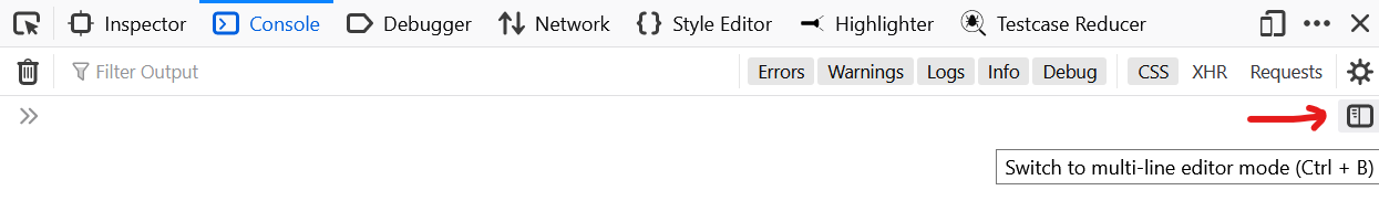 ![[Click to open image] Screenshot of the Firefox console panel showing where the multiline icon is located Screenshot of the Firefox console panel showing where the multiline icon is located](/assets/console-multiline-firefox.png)