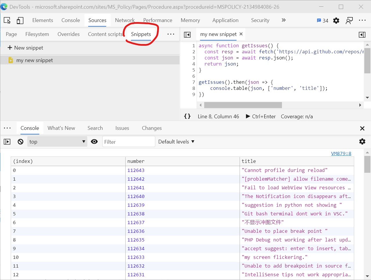 ![[Click to open image] Screenshot of Edge DevTools showing the Sources panel, and within it the Snippets pane that allows creating new code snippets and executing them Screenshot of Edge DevTools showing the Sources panel, and within it the Snippets pane that allows creating new code snippets and executing them](/assets/snippets-edge.png)